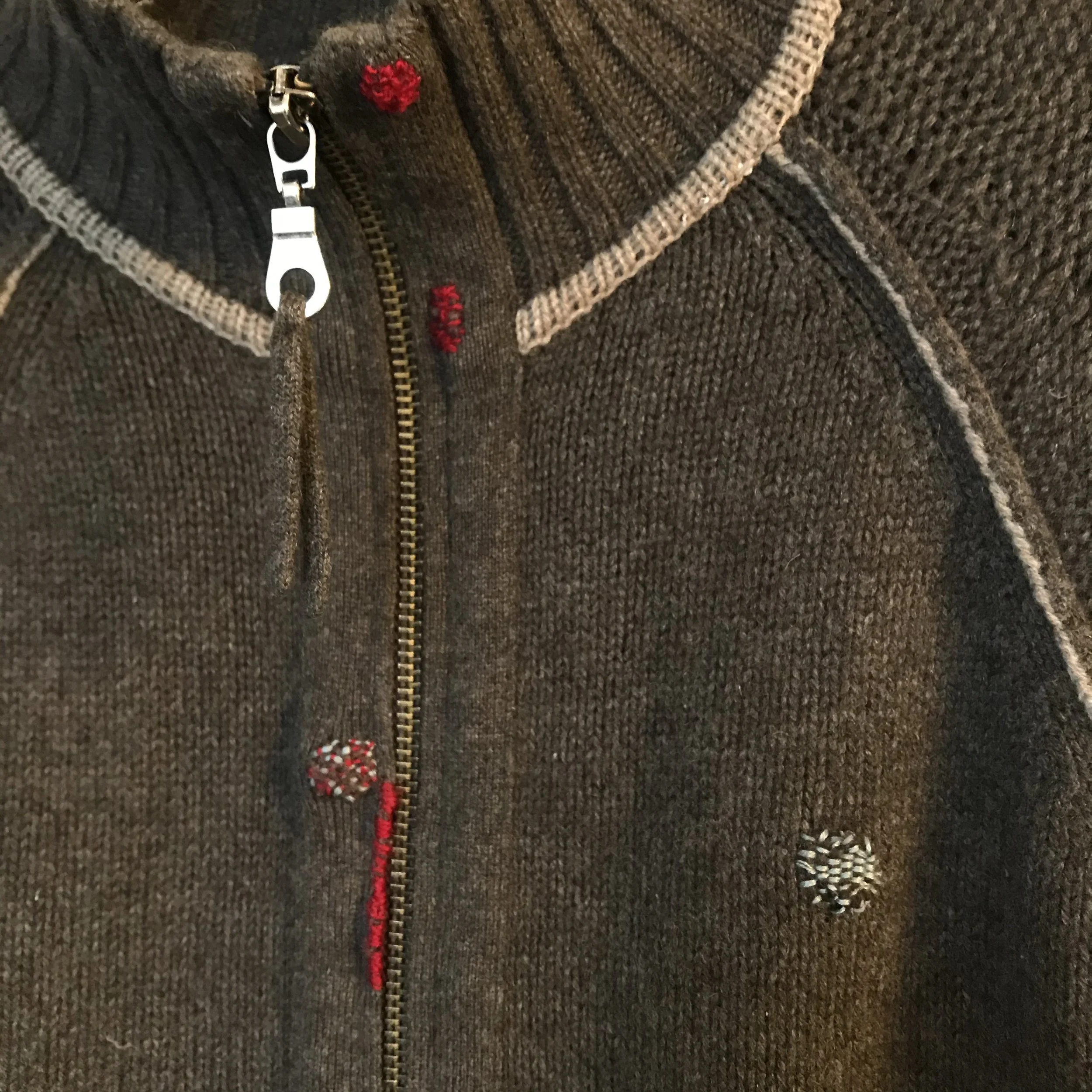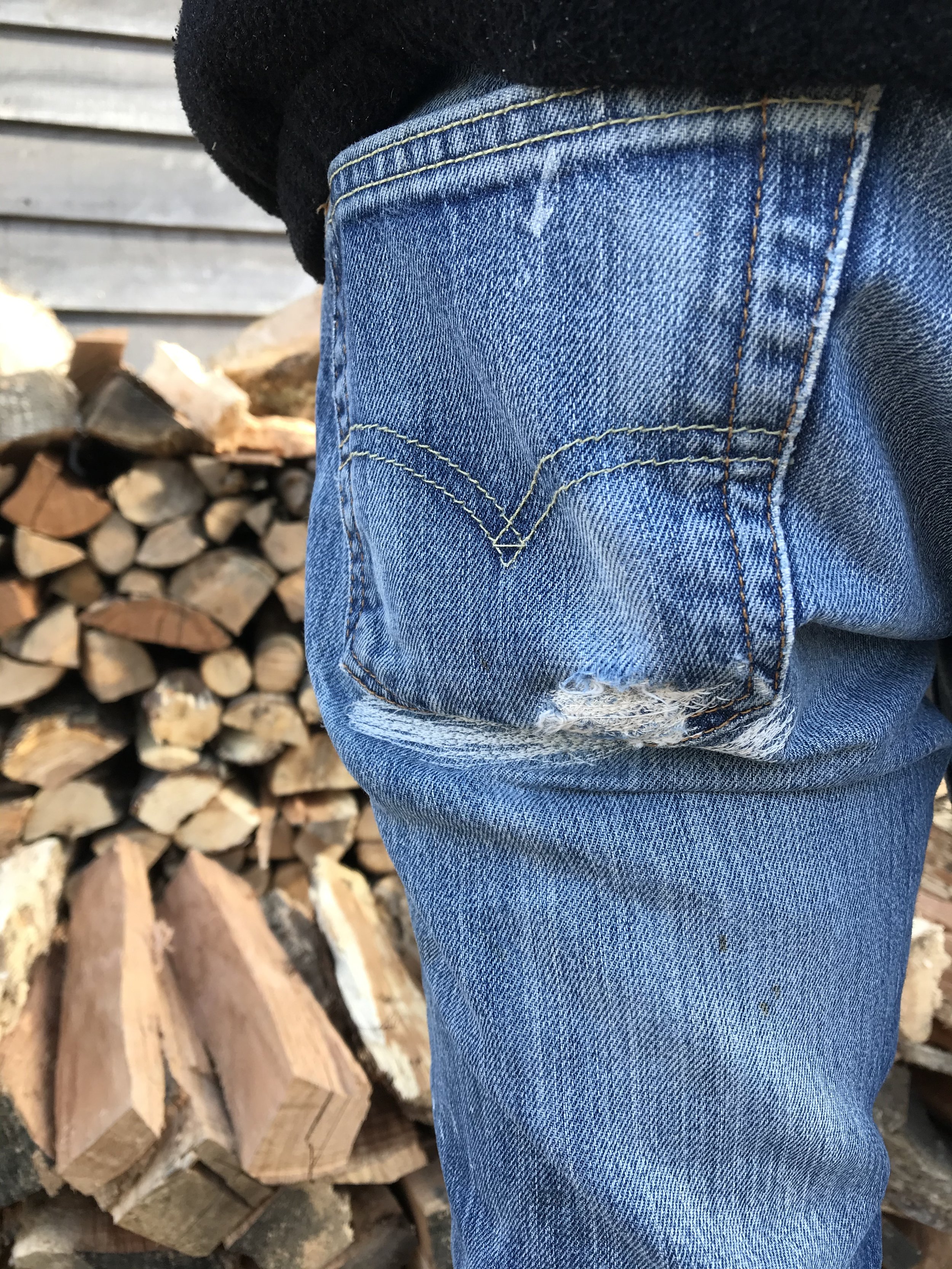 Hand-stitched embellishments and repairs to timeworn textiles.